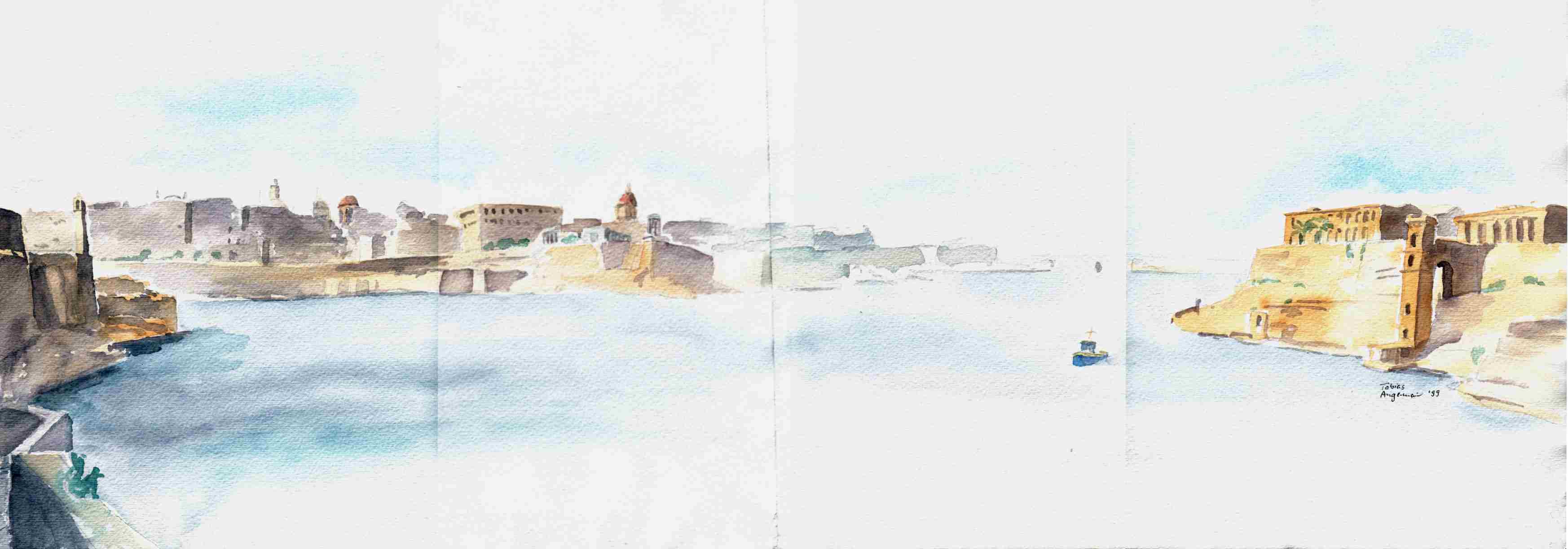 Die Hauptstadt der Insel. Blick über die Bucht. Links: Fort St. Angelo.